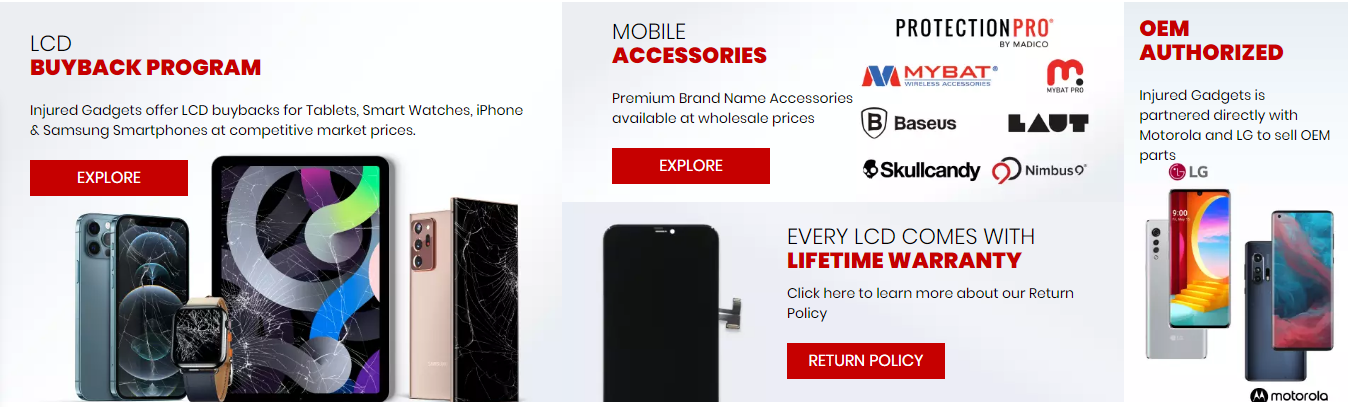 For instance, here is the website of Injured Gadgets, where we have highlighted our product categories and services that we are providing to a customer with a holistic view of their business.